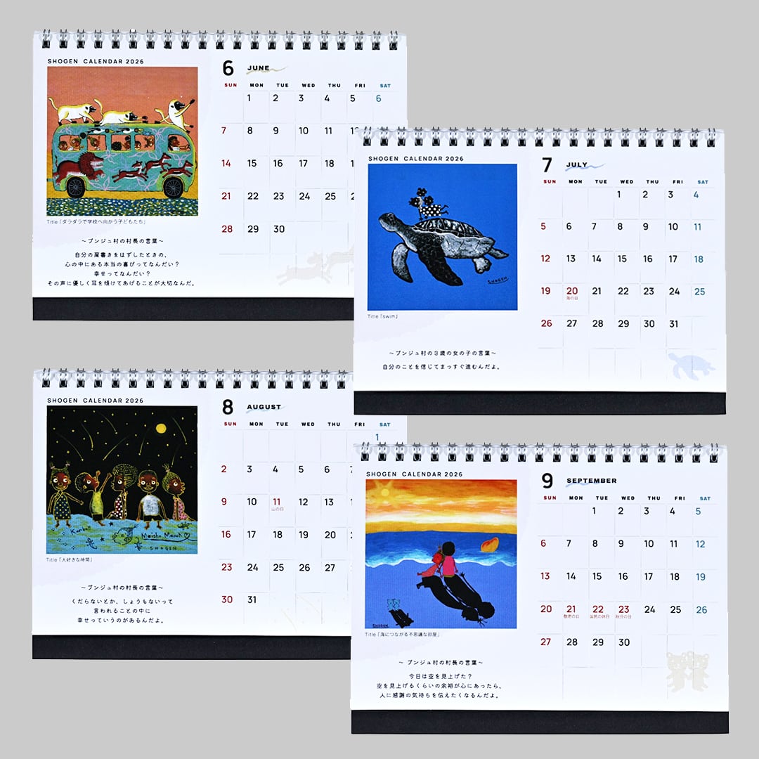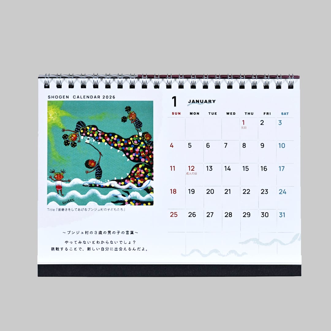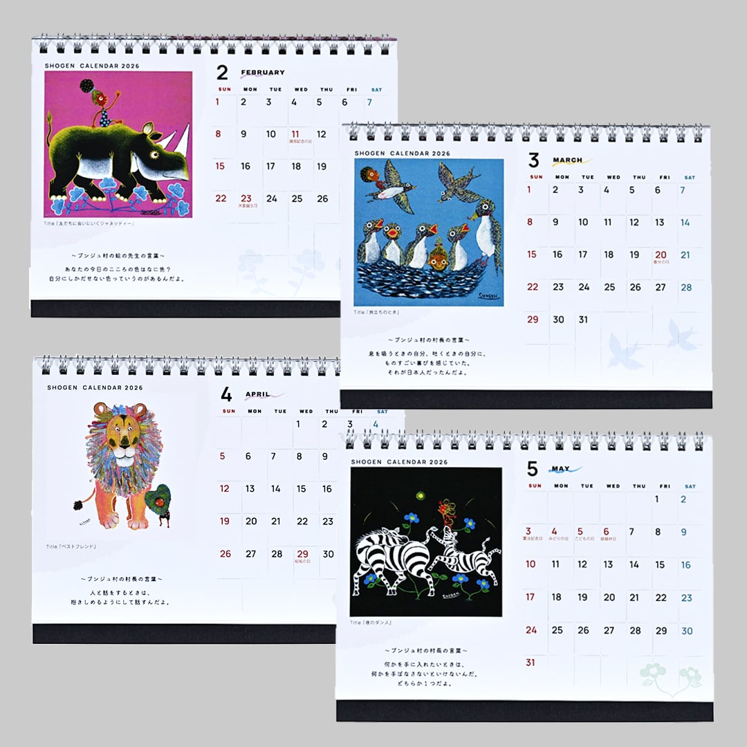 アフリカンペイントアーティストSHOGENの2026年のデスクカレンダー。