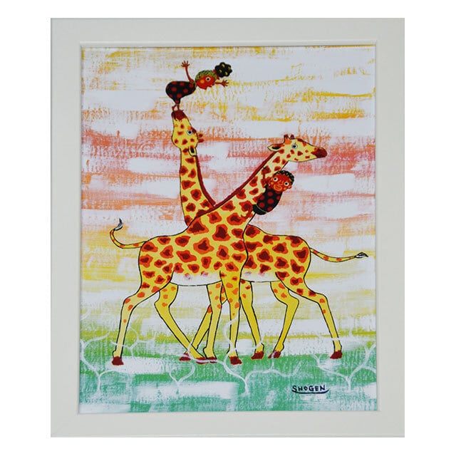 「キリンと遊ぶ子どもたち」フレーム付きレプリカA4サイズFA4-018